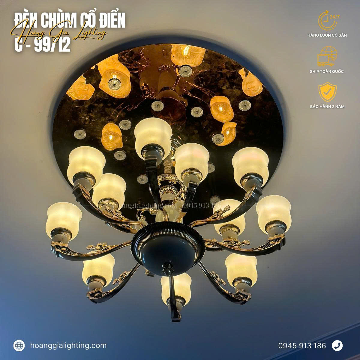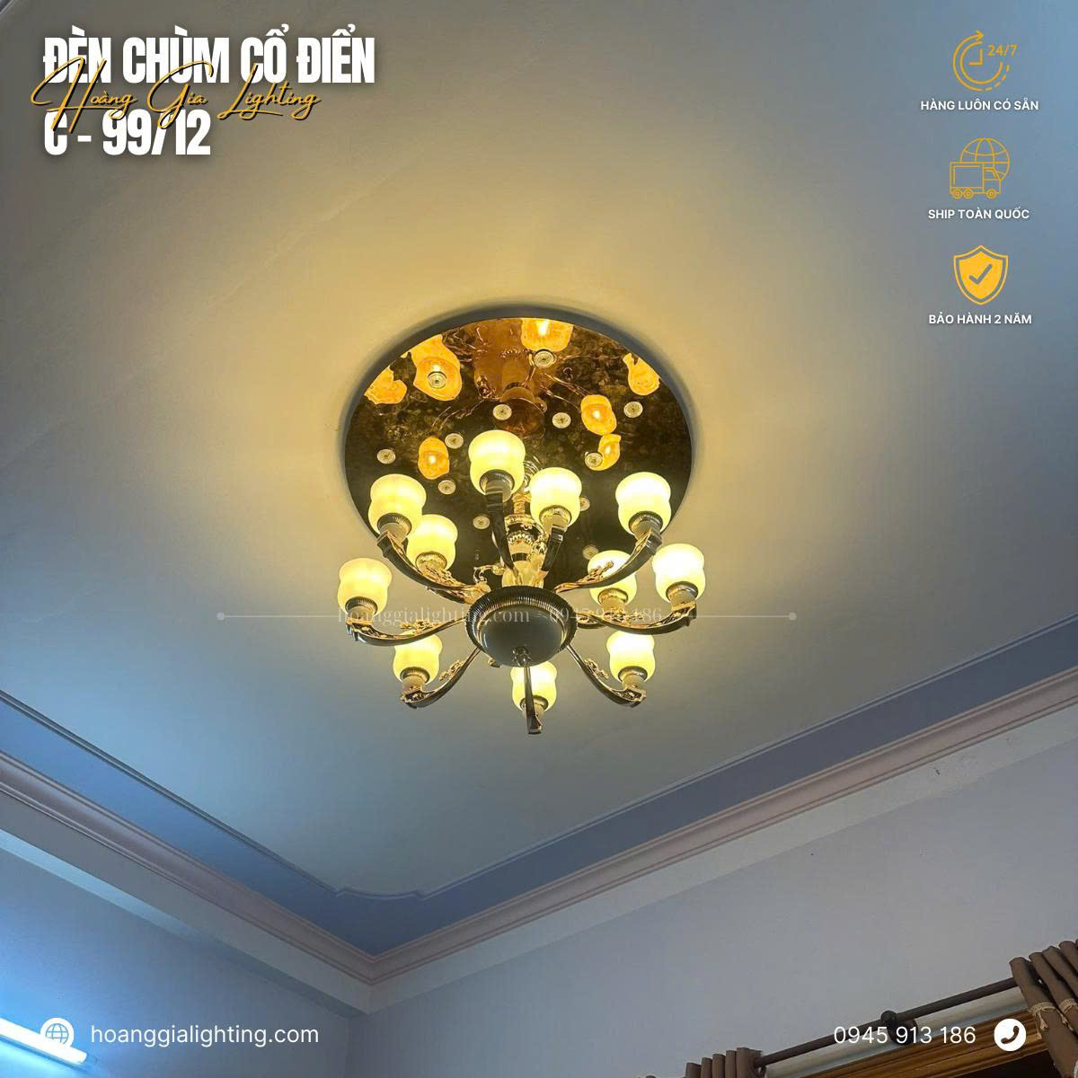 Với mức giá cạnh tranh và dịch vụ tư vấn chuyên nghiệp, Hoanggia Lighting là điểm đến lý tưởng cho những người đang tìm kiếm đèn chùm đồng để trang trí không gian sống của mình. Đừng ngần ngại liên hệ qua Hotline 0945.913.186 để nhận sự tư vấn chi tiết và khám phá những mẫu đèn chùm đồng đẹp nhất.