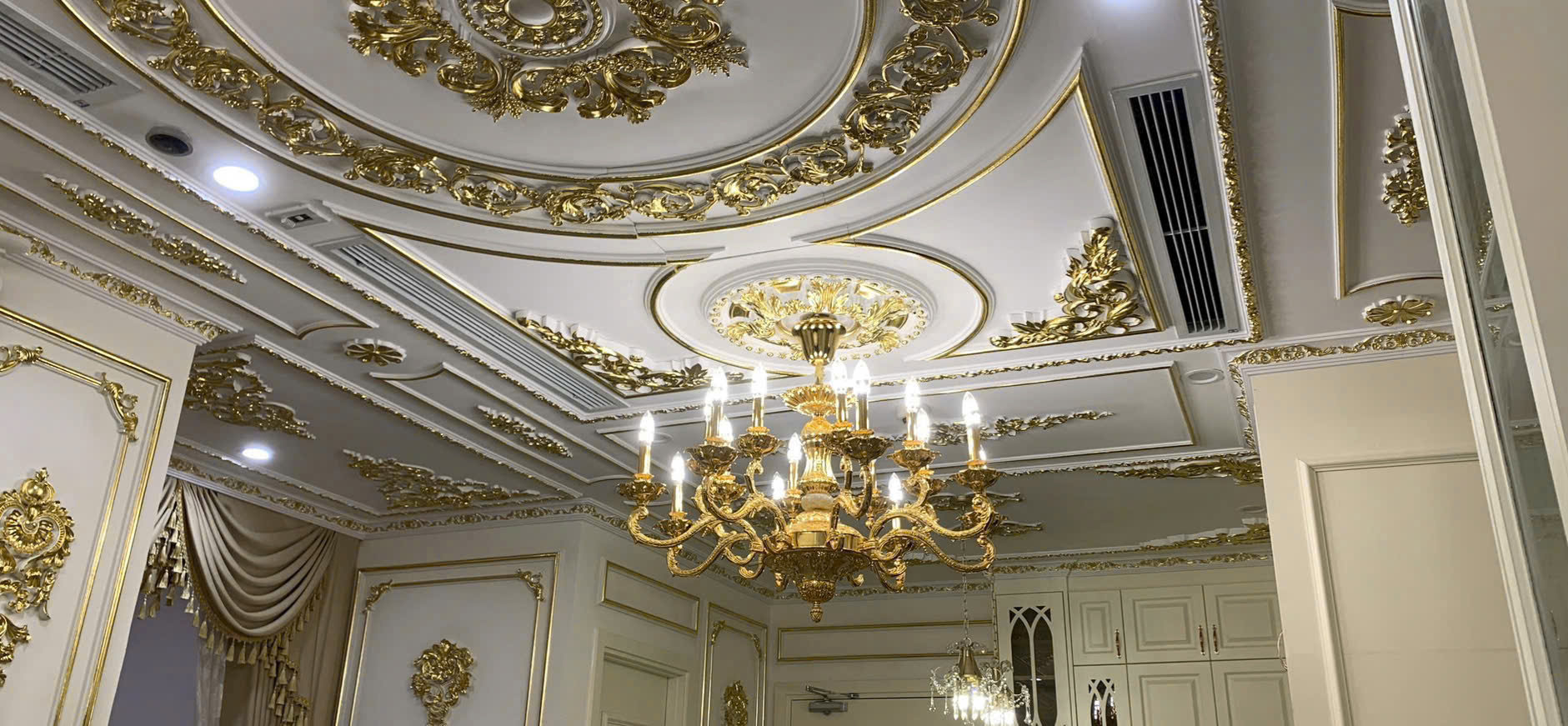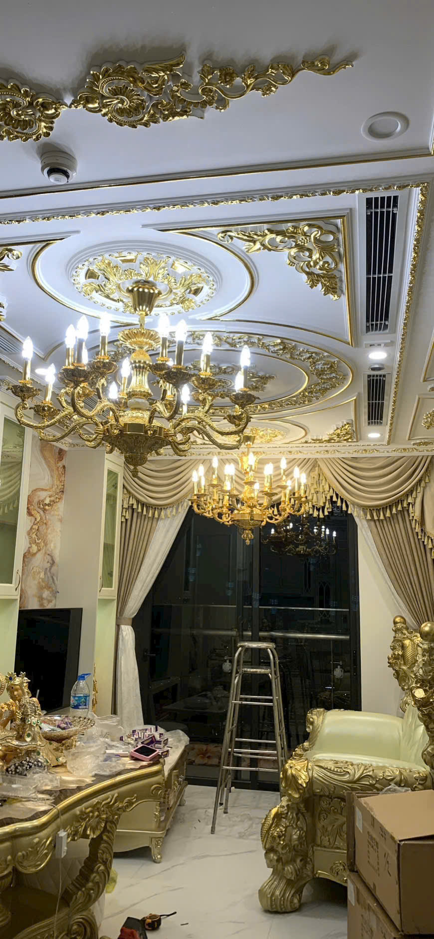 – Thân đèn làm bằng đồng mạ vàng màu 24k với hoa văn tinh xảo.