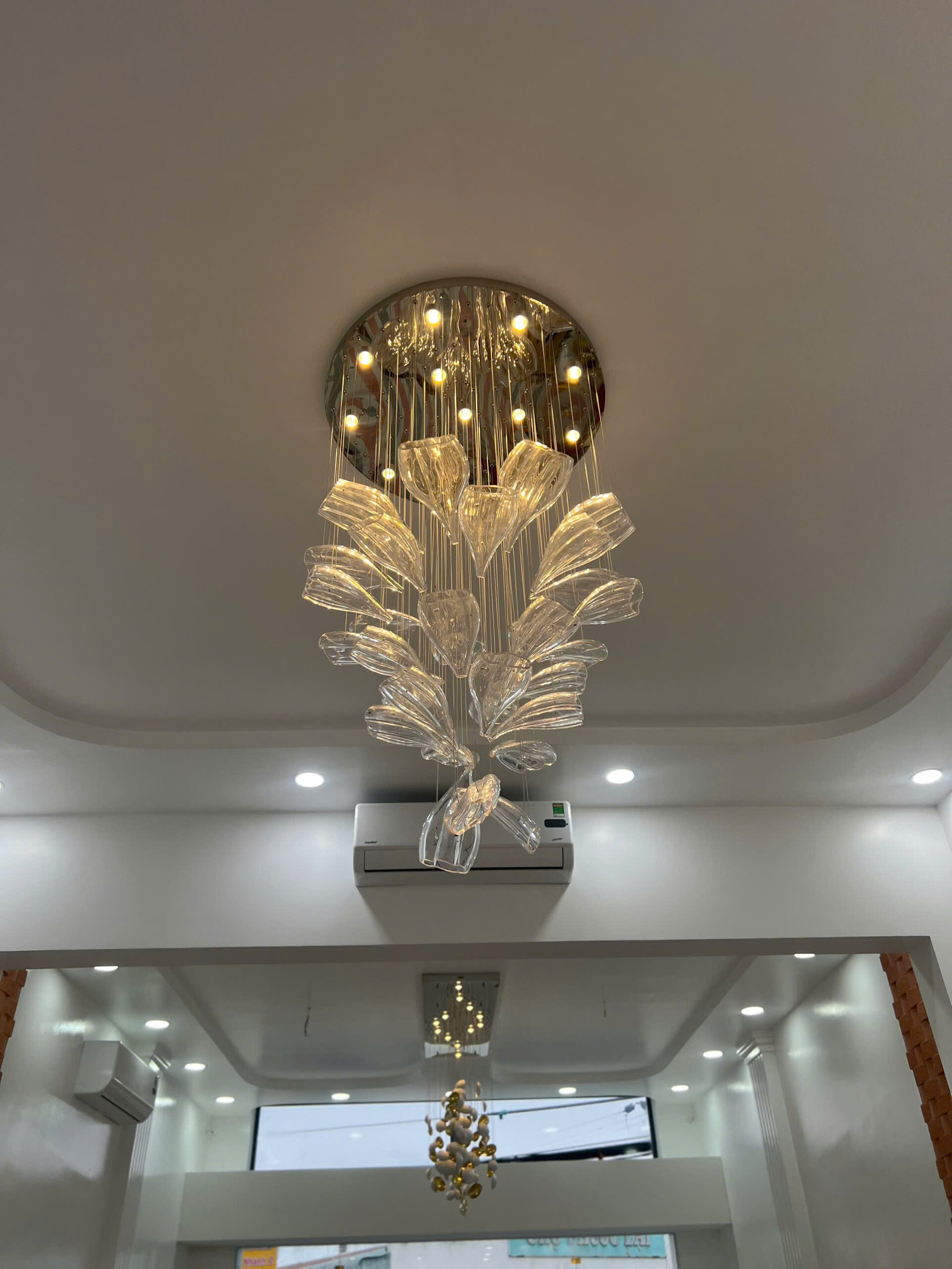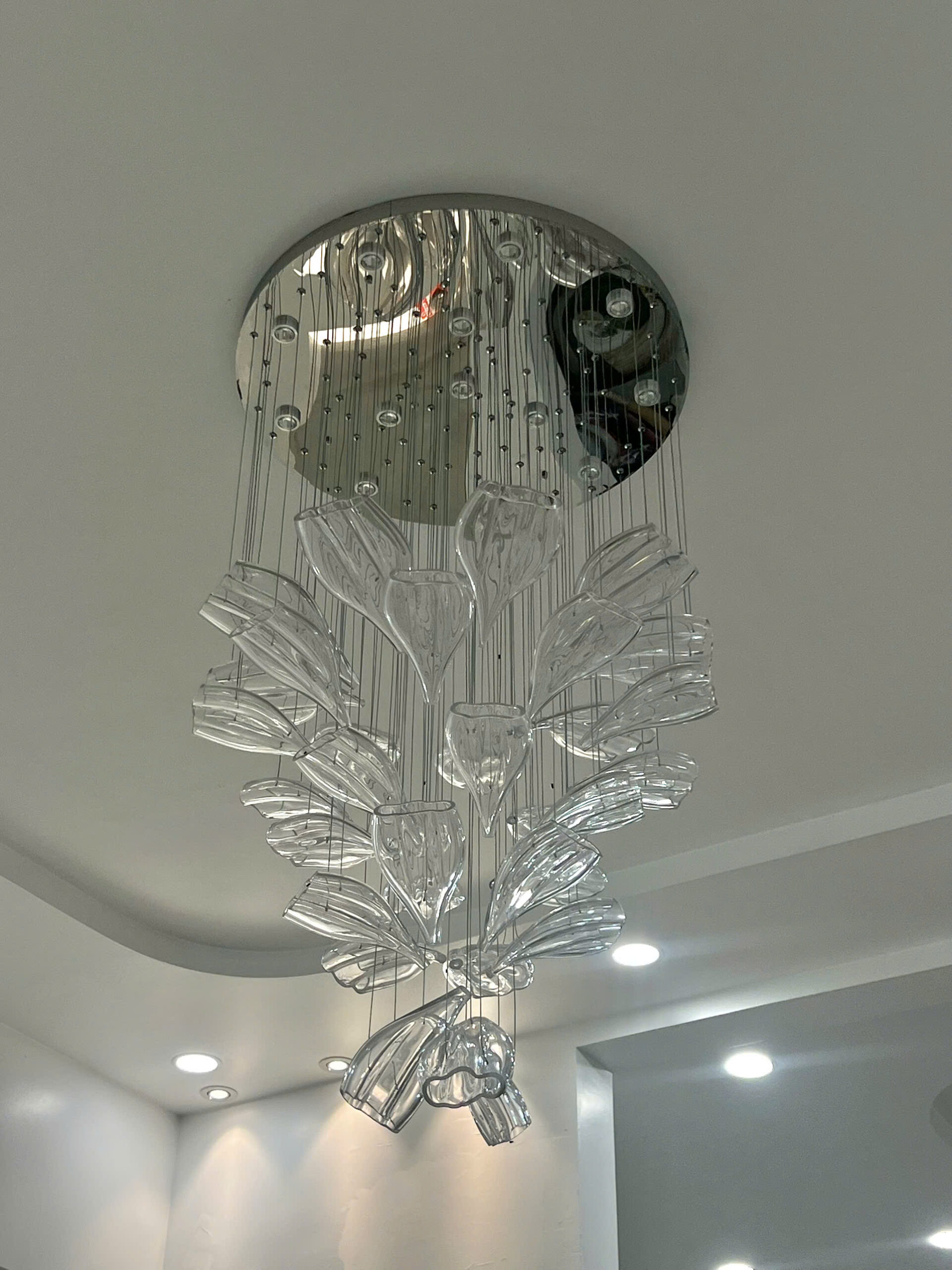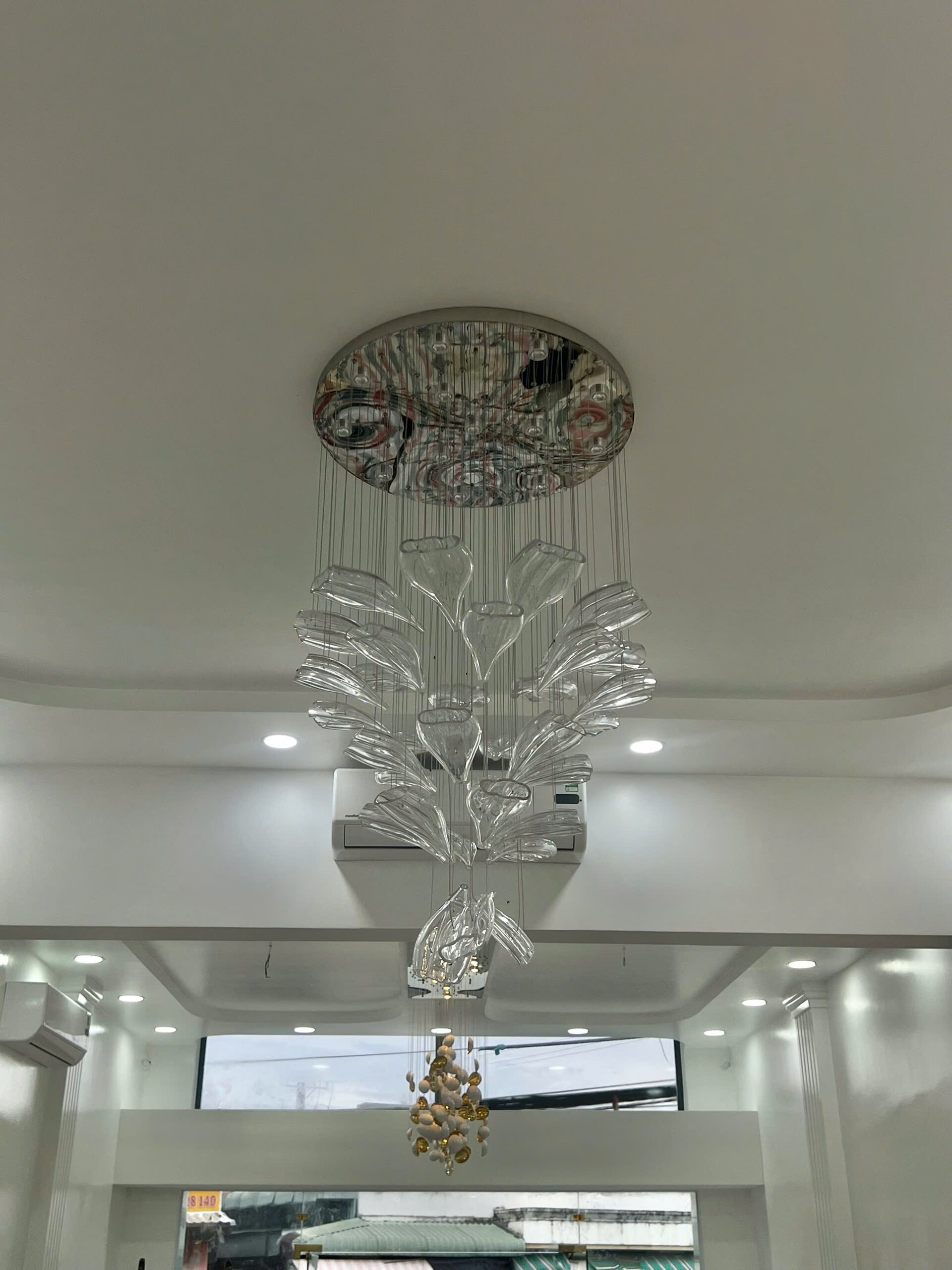 – Mâm đèn bằng inox, chao bằng thủy tinh