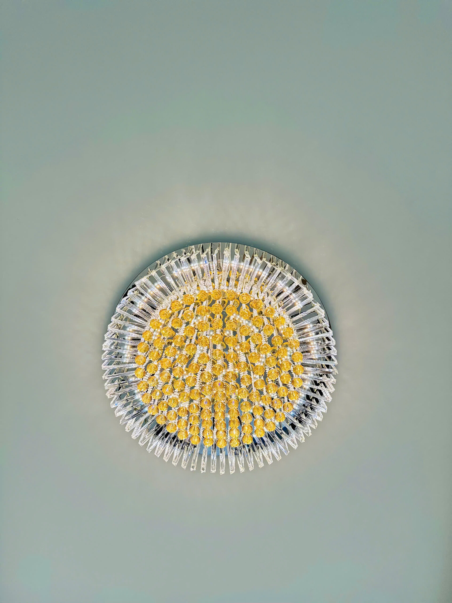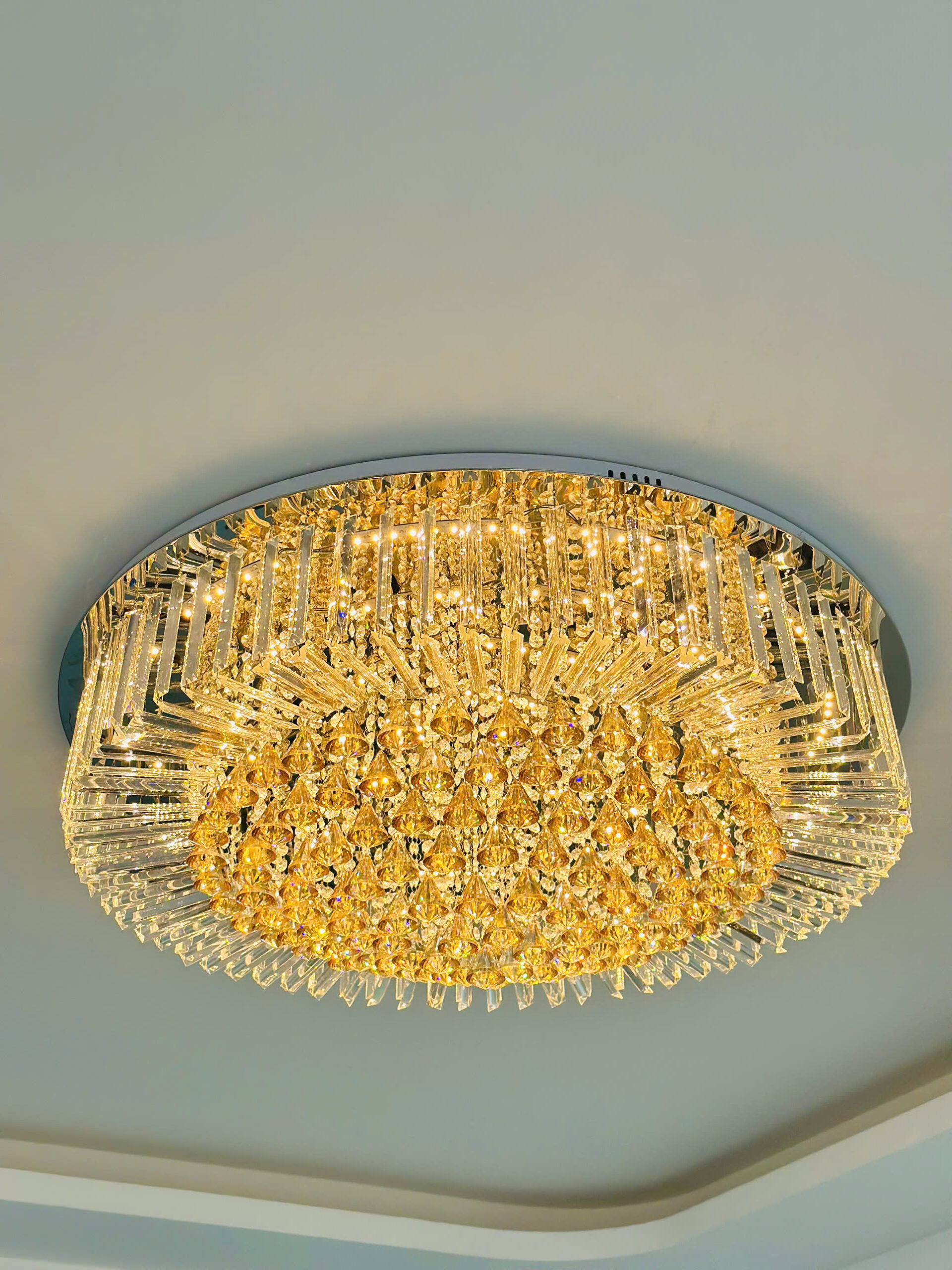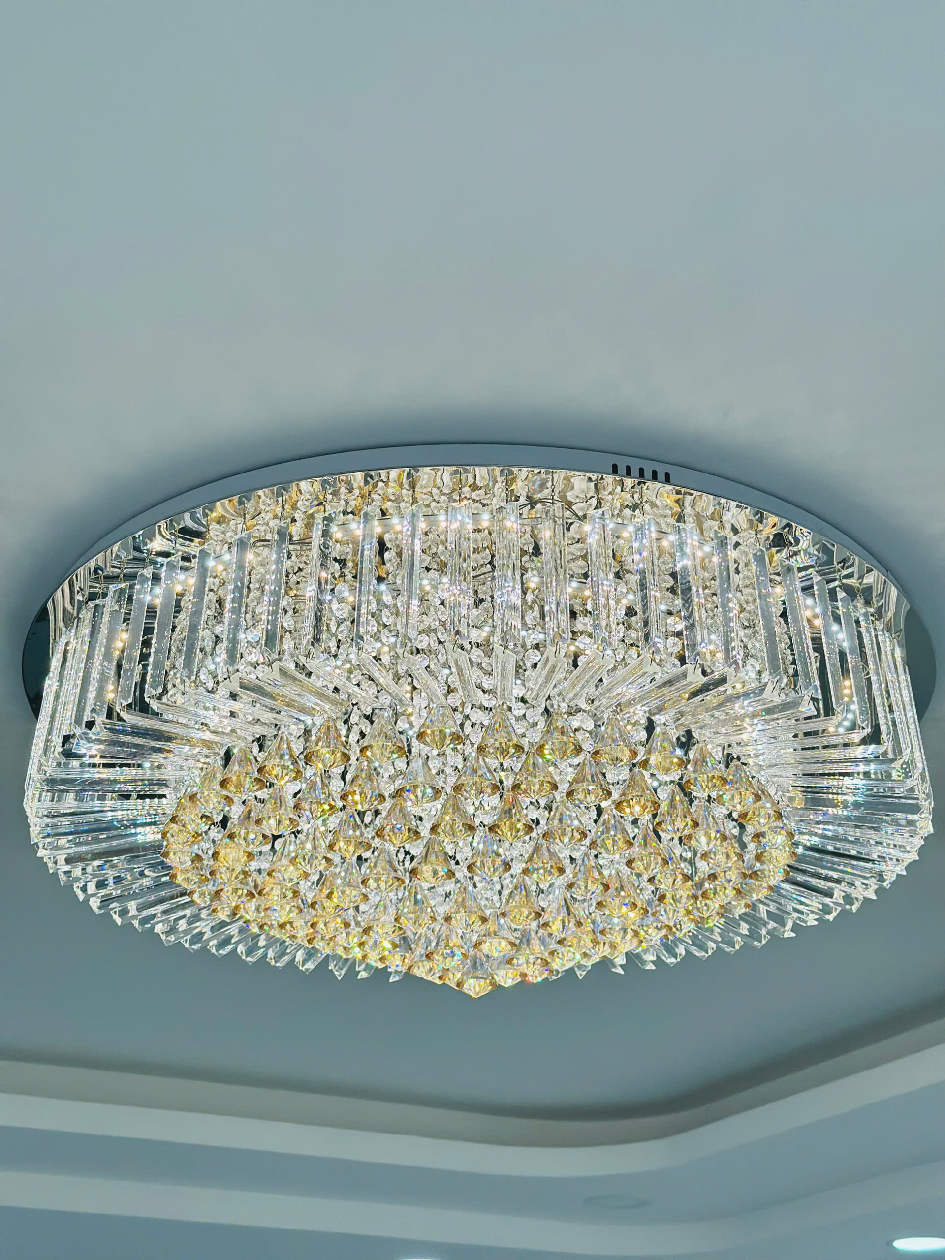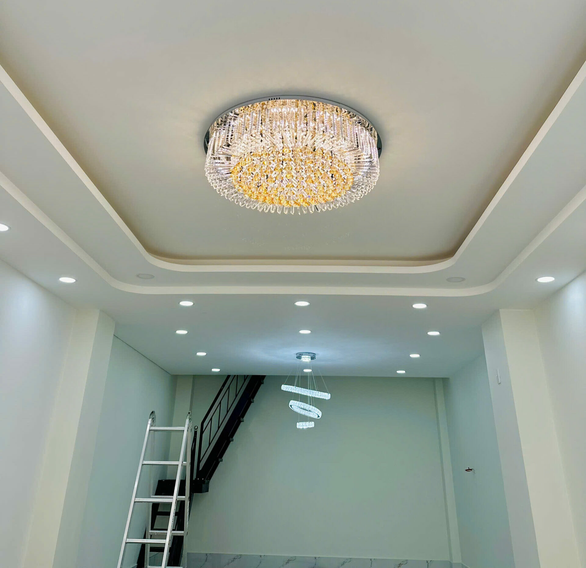 – Mâm đèn bằng inox, khung đèn có viền thẻ pha lê