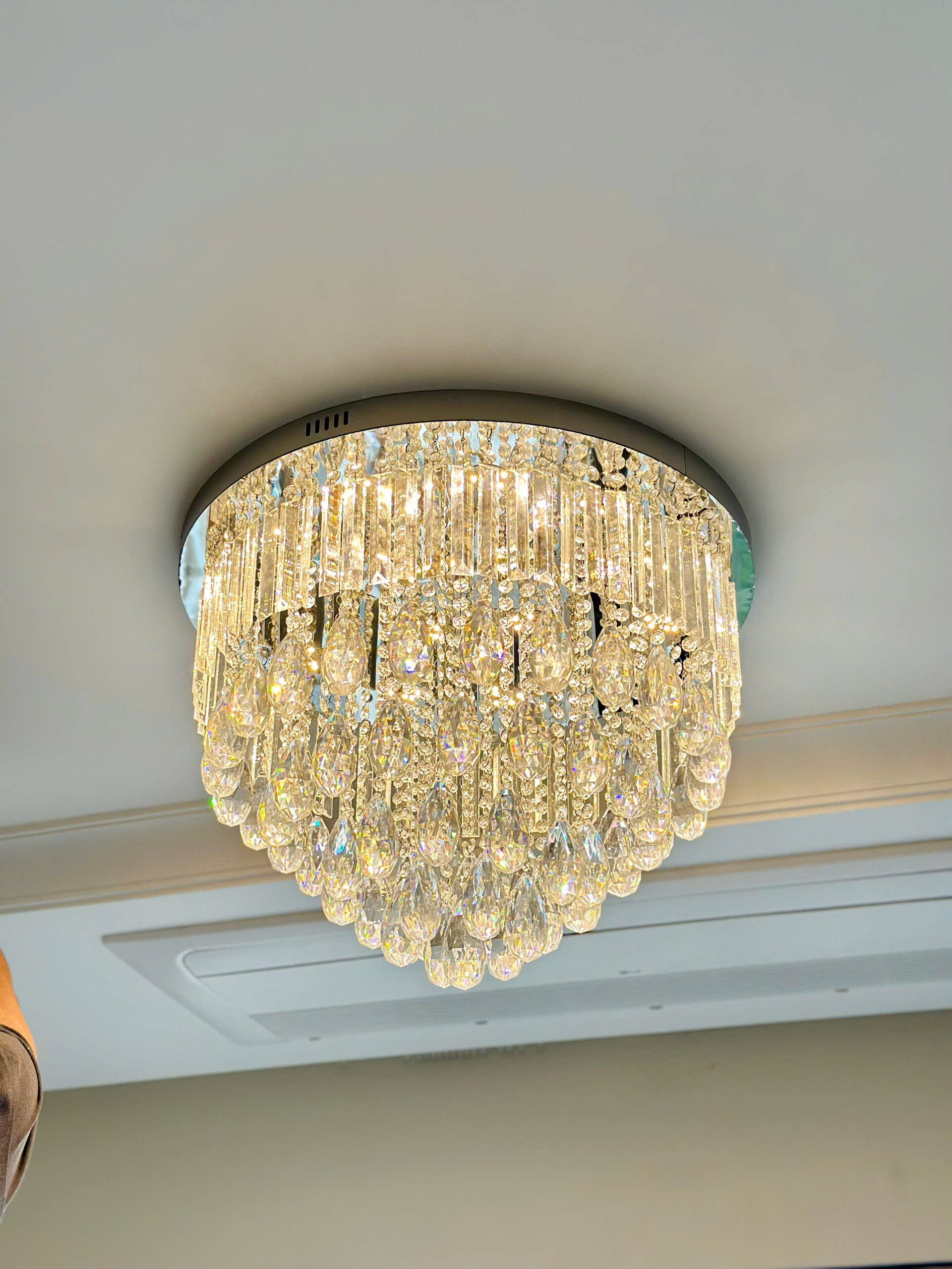 Dễ dàng lắp đặt và vệ sinh: So với đèn thả pha lê, thì đèn ốp trần pha lê có kích thước nhỏ gọn, dễ dàng lắp đặt và tháo lắp. Bên cạnh đó, chúng cũng dễ dàng vệ sinh chỉ cần lau chùi bề mặt bằng khăn ẩm.