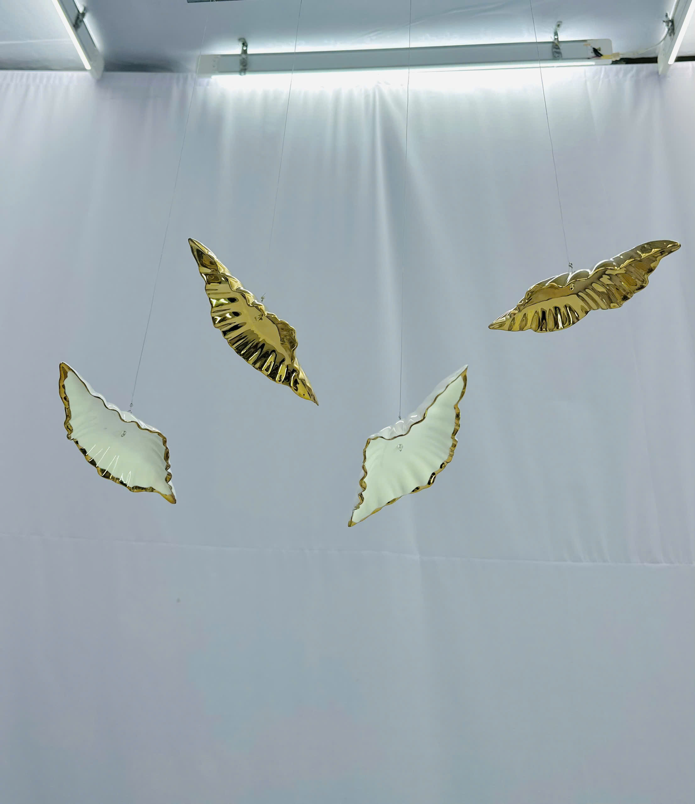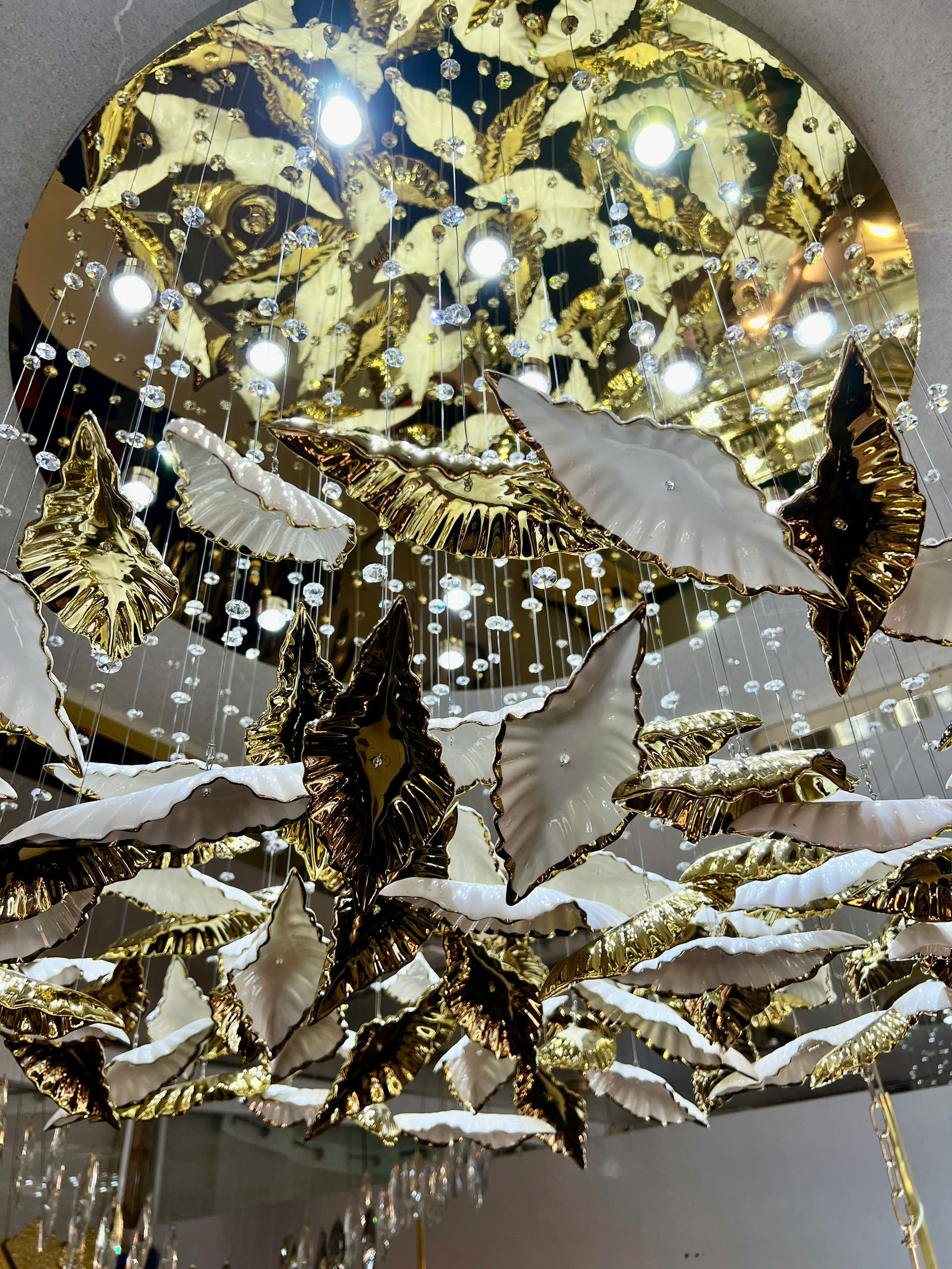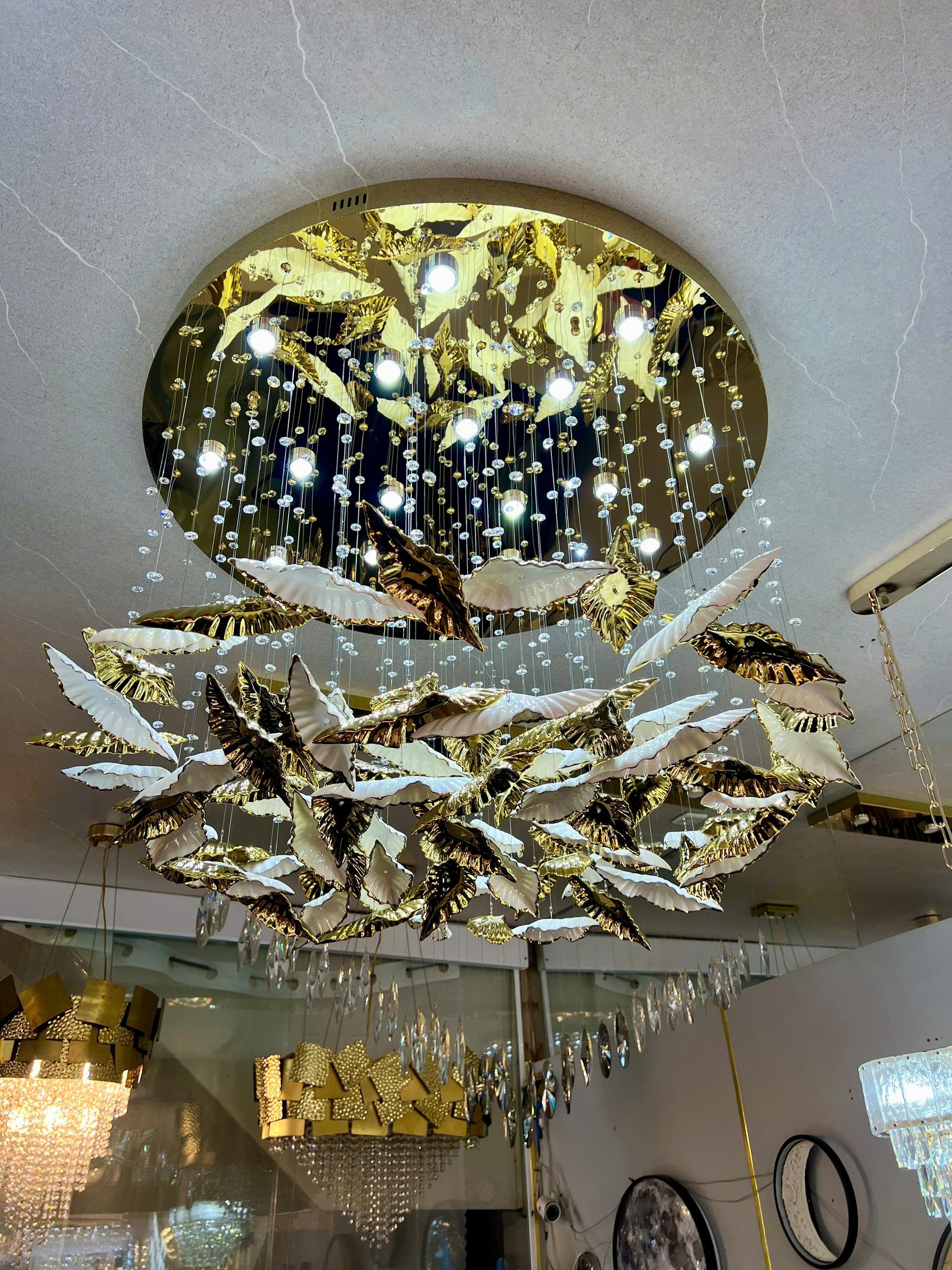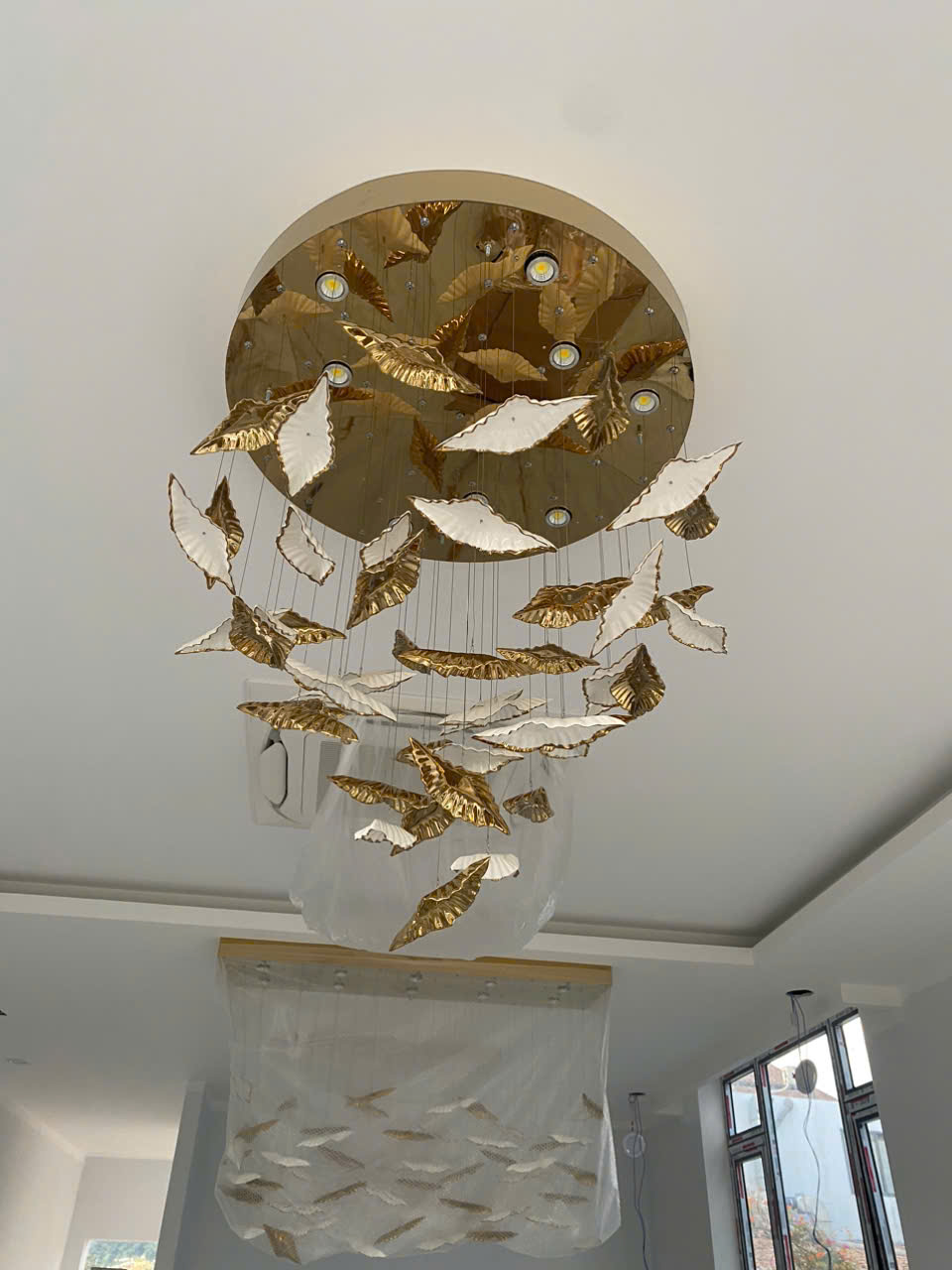 Đặc điểm: Phần chao đèn được làm hoàn toàn từ sứ cao cấp phủ màu trắng và vàng ánh kim
