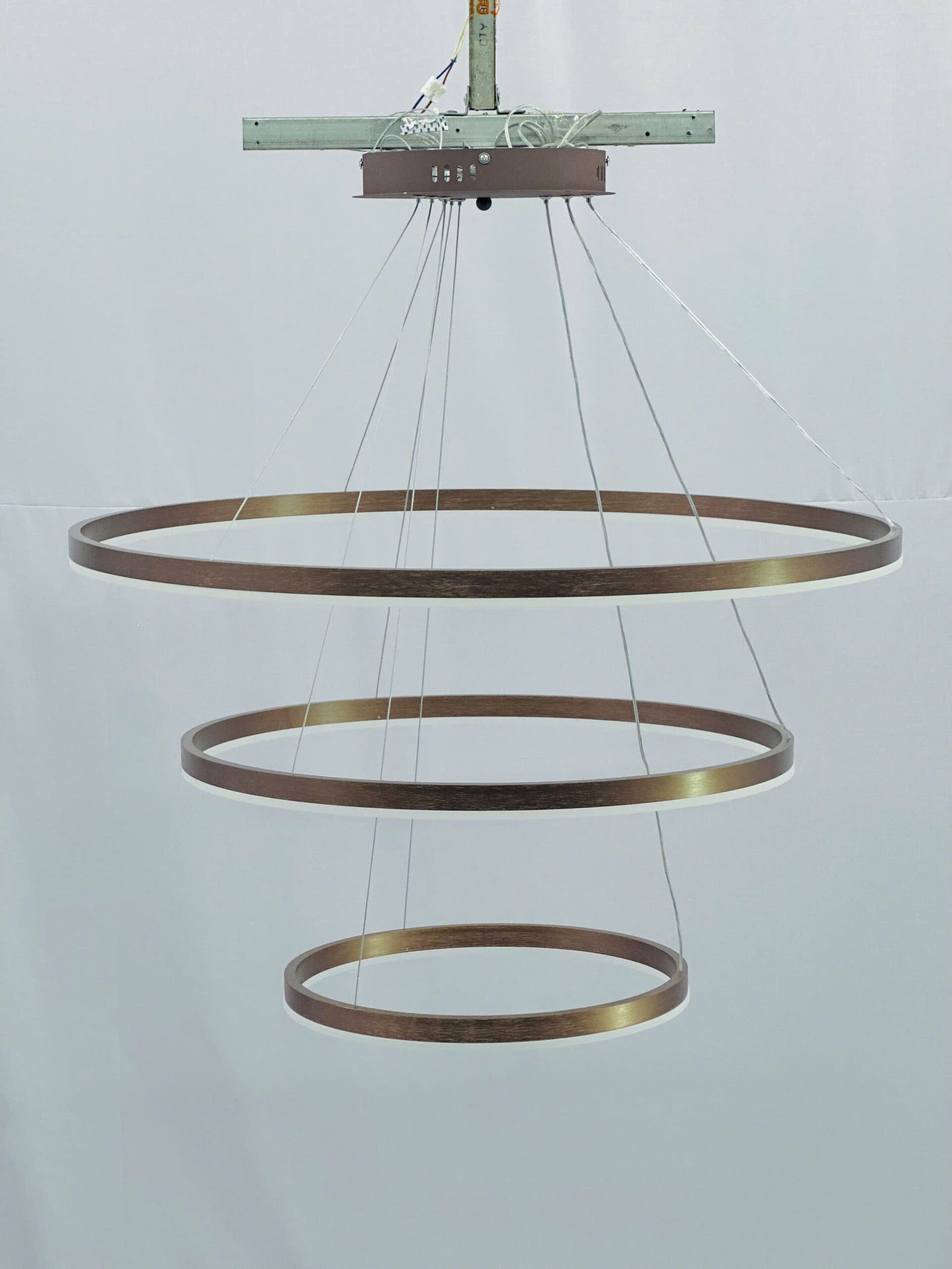 – Thiết kế: Đèn thả hiện đại THD7051T3 Nâu kích thước Φ400+600+800xH2000 có thiết kế rất đơn giản là 3 vòng kim loại có đèn LED được xếp thành tầng từ to đến nhỏ từ cao xuống thấp nhưng vẫn sang trọng và hiện đại. Đây sẽ là điểm nhấn tuyệt vời cho không gian nhà bạn
