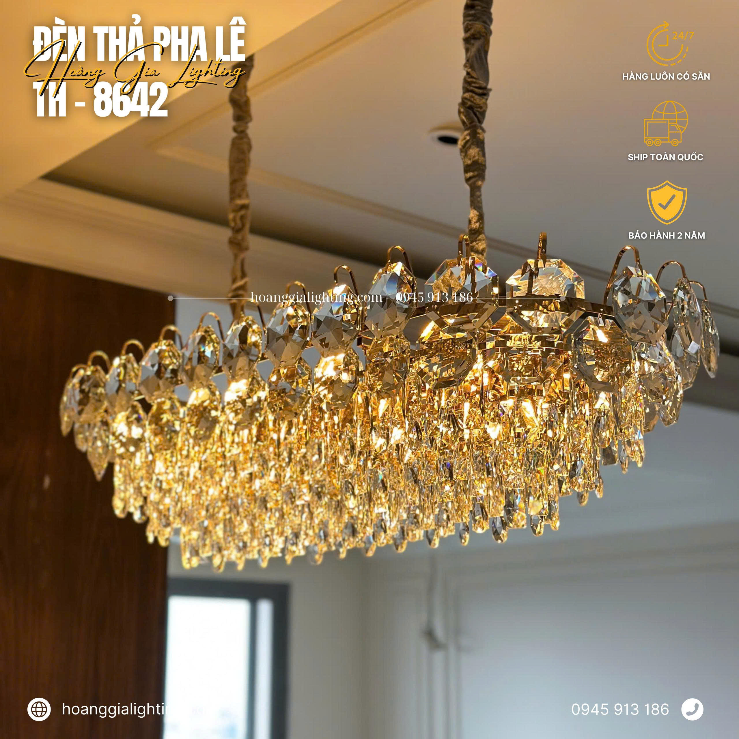 Đèn thả pha lê TH-8642 đã trở thành một xu hướng trang trí phổ biến trong những năm gần đây. Với sự kết hợp giữa tính thẩm mỹ và tính ứng dụng, những mẫu đèn trang trí phòng bếp này không chỉ mang lại ánh sáng chất lượng mà còn tạo điểm nhấn độc đáo cho không gian bếp của bạn.