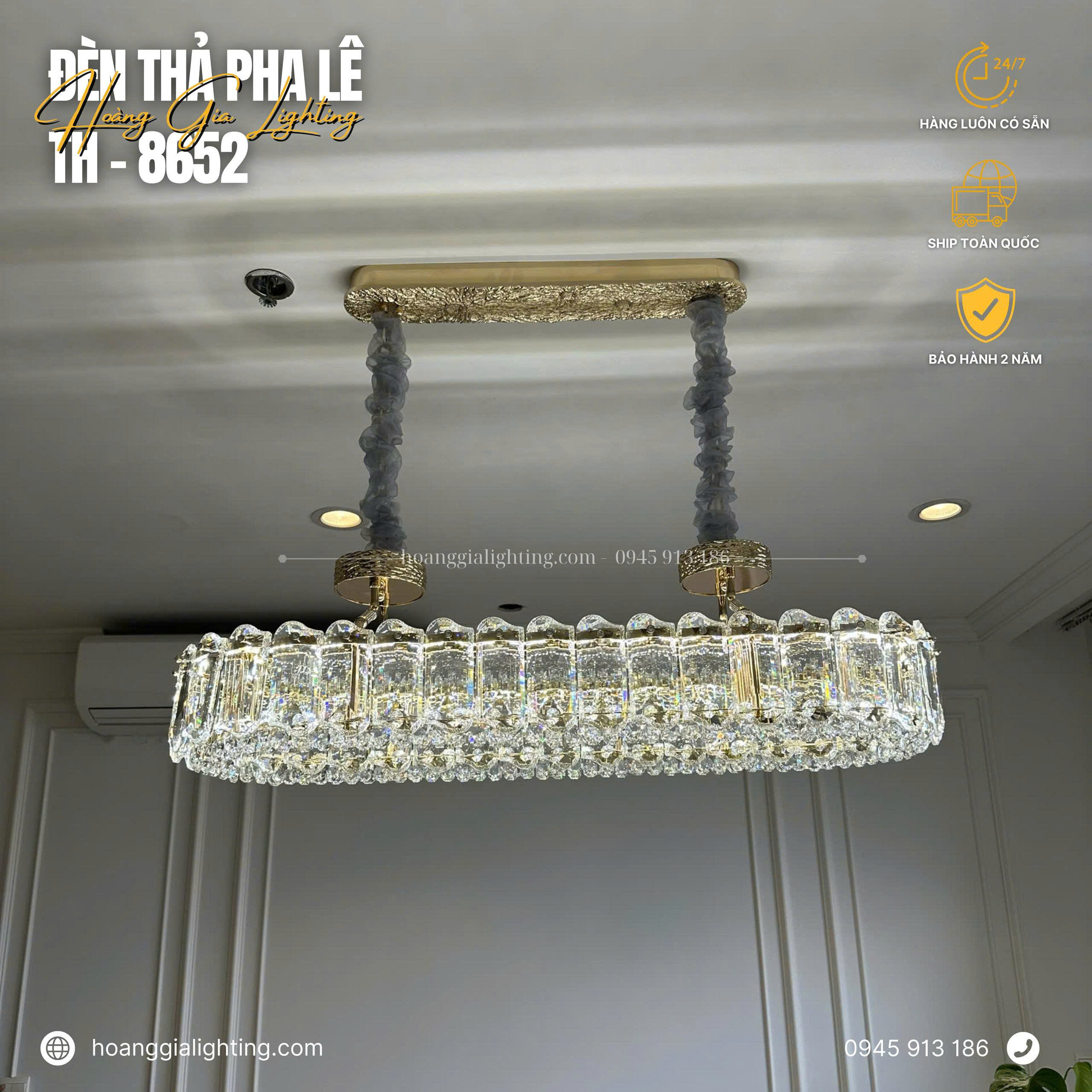 Đèn thả pha lê TH-8652 đã trở thành một xu hướng trang trí phổ biến trong những năm gần đây. Với sự kết hợp giữa tính thẩm mỹ và tính ứng dụng, những mẫu đèn trang trí phòng bếp này không chỉ mang lại ánh sáng chất lượng mà còn tạo điểm nhấn độc đáo cho không gian bếp của bạn.