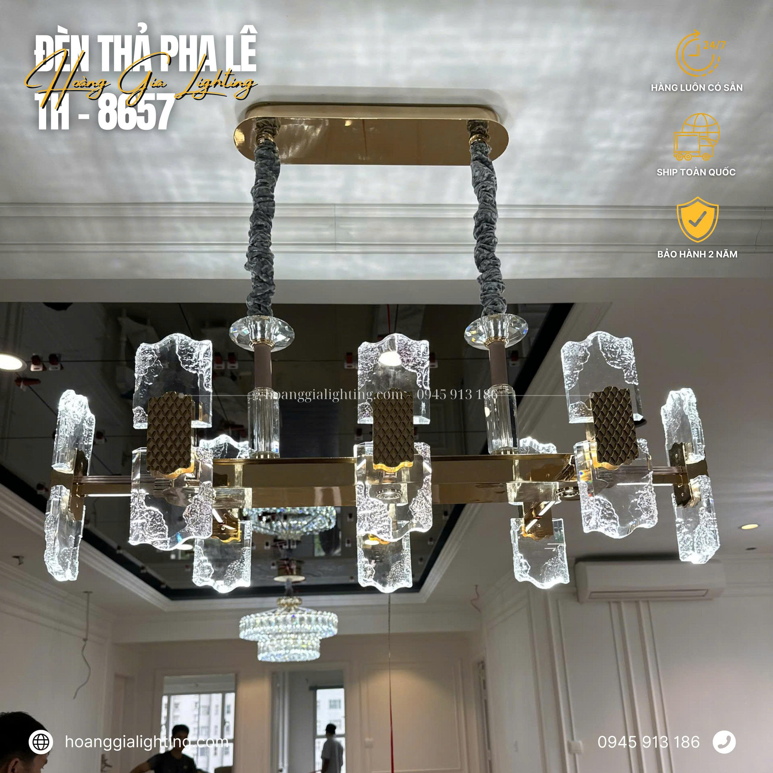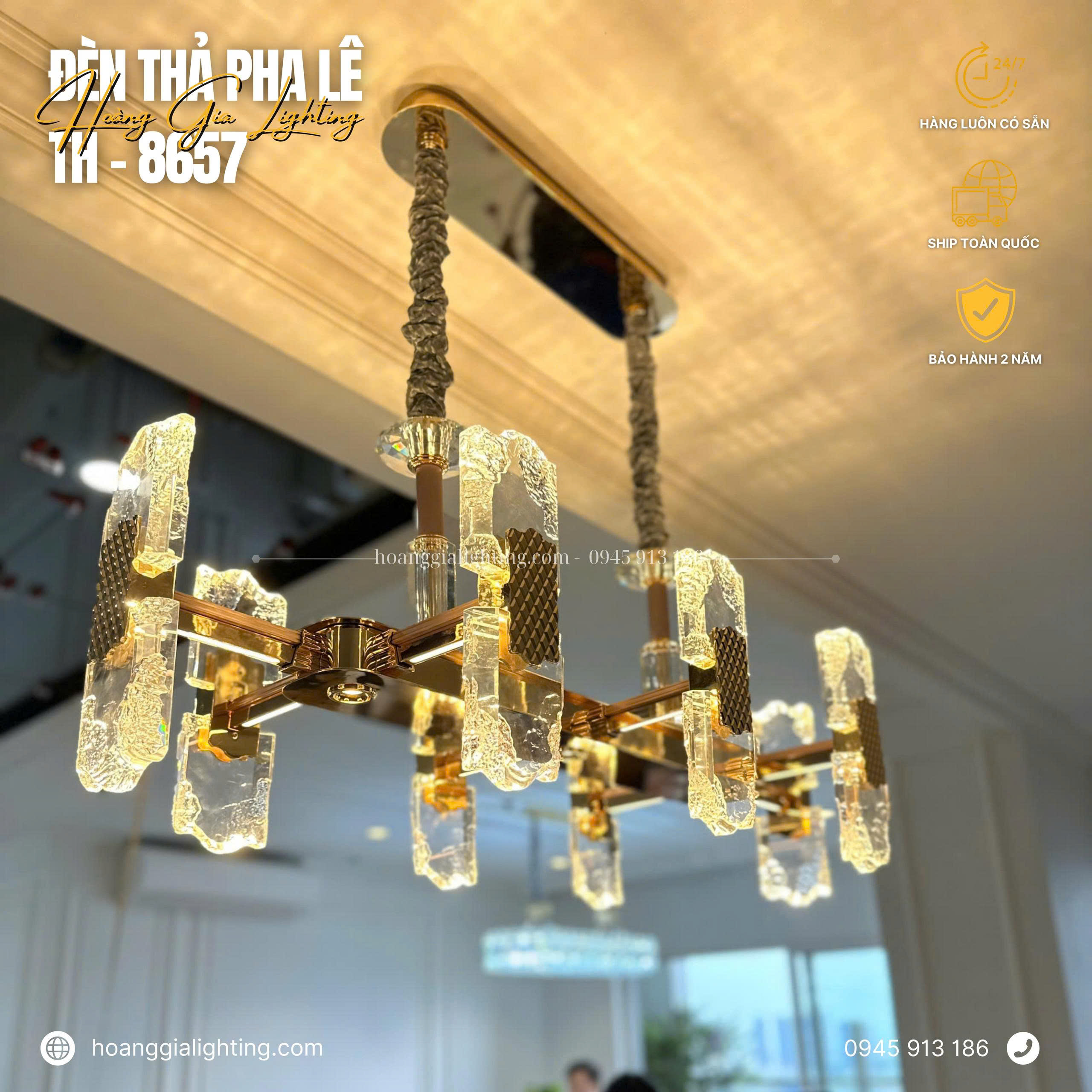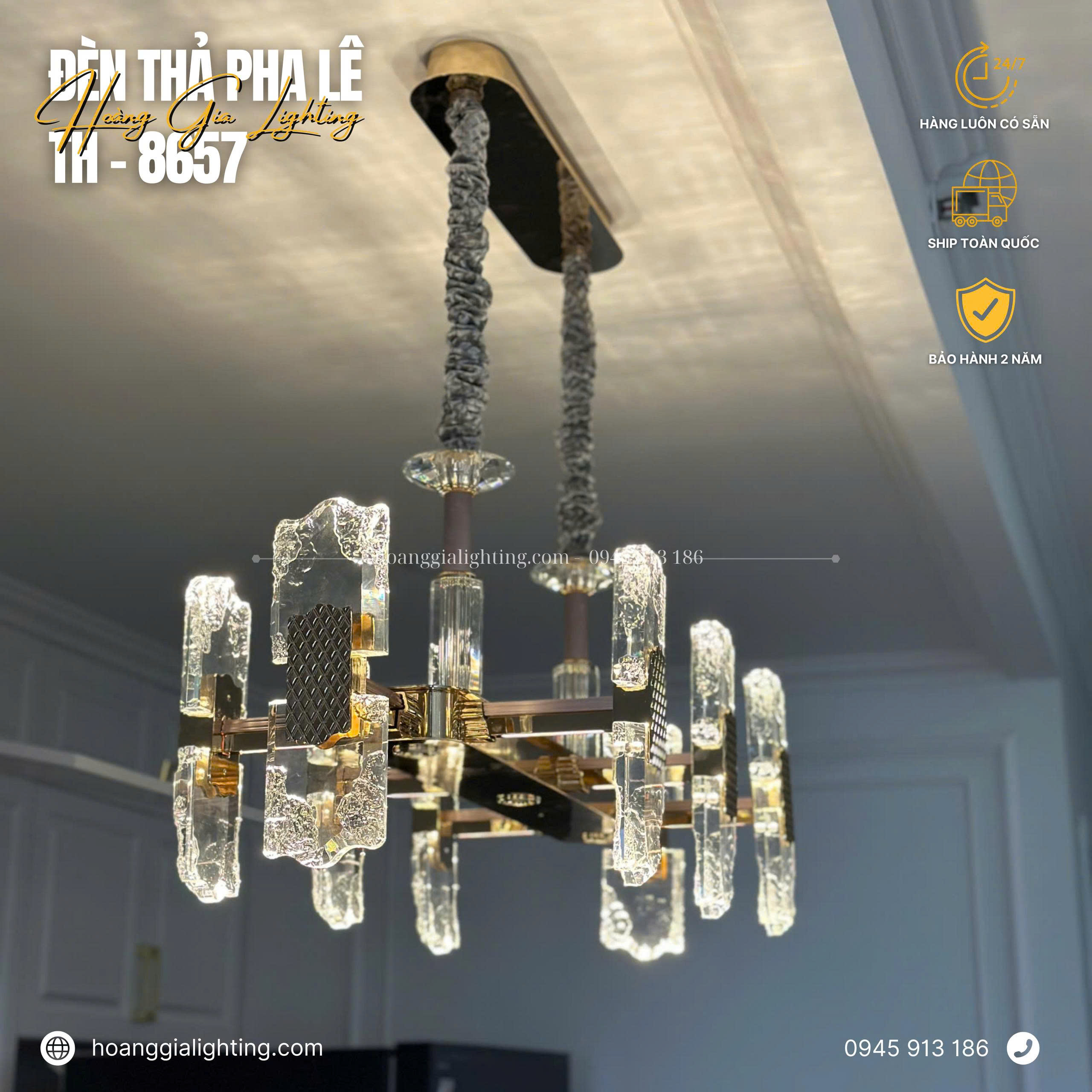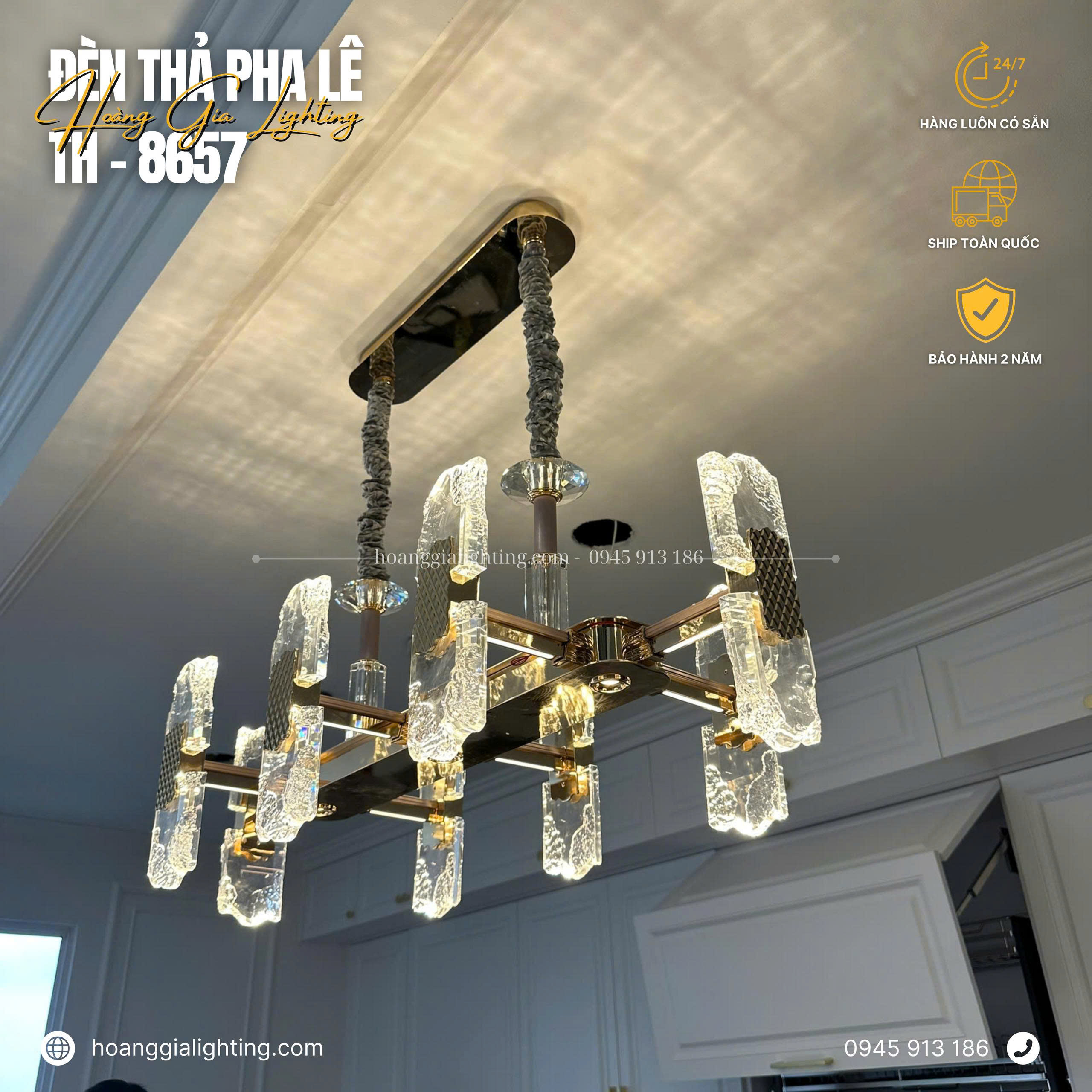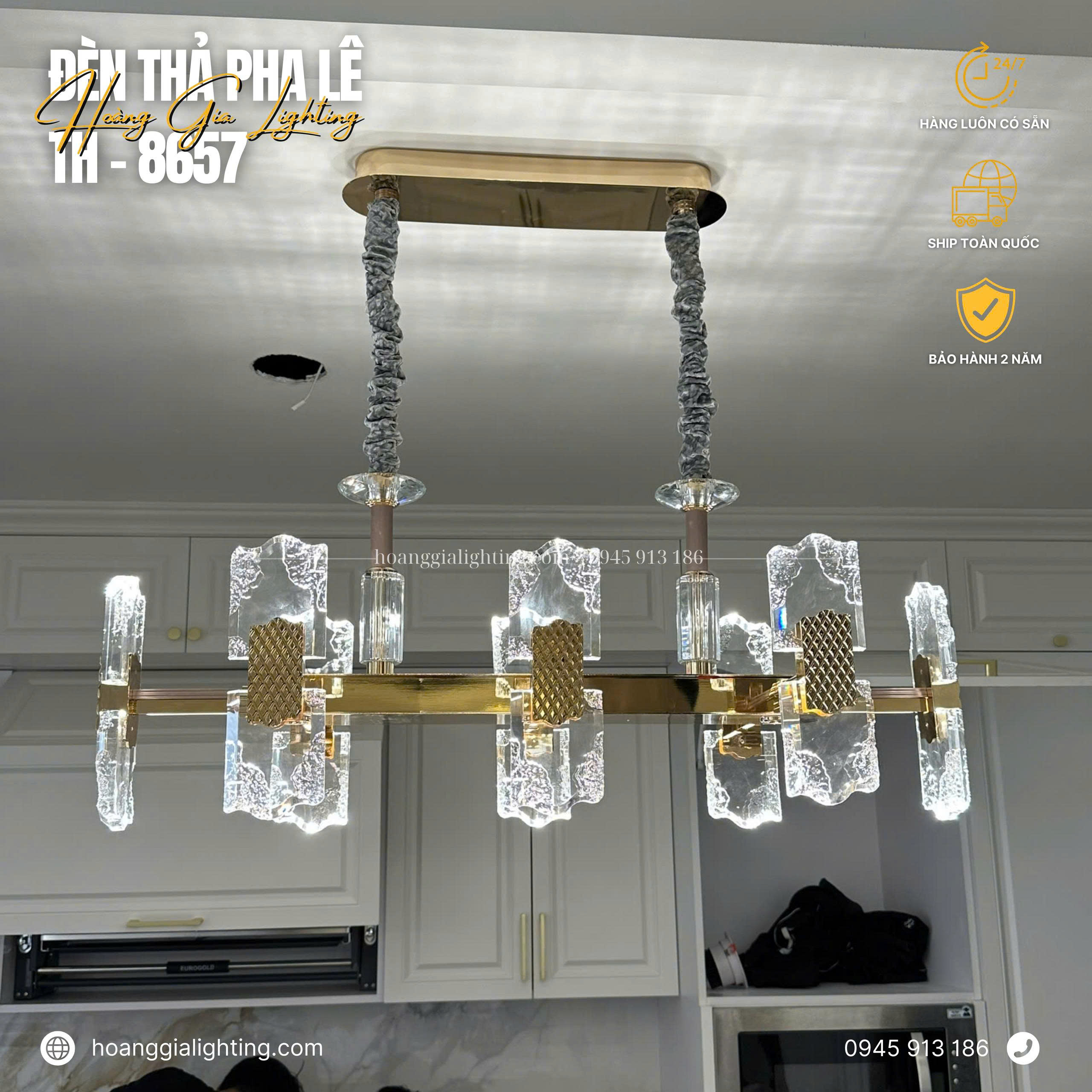 Đèn thả pha lê TH-8657 đã trở thành một xu hướng trang trí phổ biến trong những năm gần đây. Với sự kết hợp giữa tính thẩm mỹ và tính ứng dụng, những mẫu đèn trang trí phòng bếp này không chỉ mang lại ánh sáng chất lượng mà còn tạo điểm nhấn độc đáo cho không gian bếp của bạn.