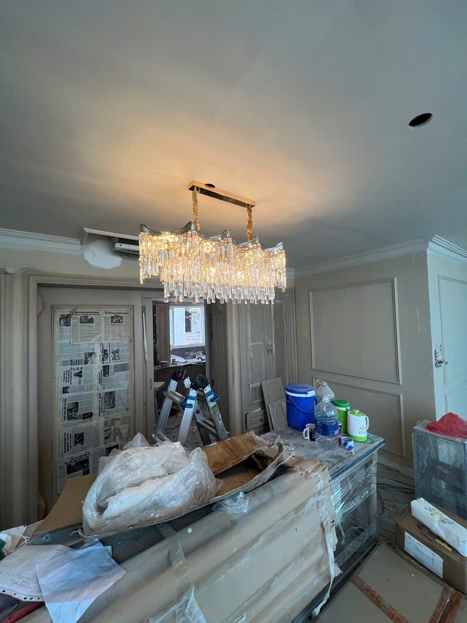 Kết hợp với đèn chùm trần: Để tăng tính thẩm mỹ và ánh sáng cho căn bếp, bạn có thể kết hợp đèn chùm trần. Đèn chùm trần mang lại ánh sáng chung và đồng đều cho căn bếp, trong khi đèn thả phòng bếp tạo điểm nhấn và hiệu ứng ánh sáng riêng biệt.