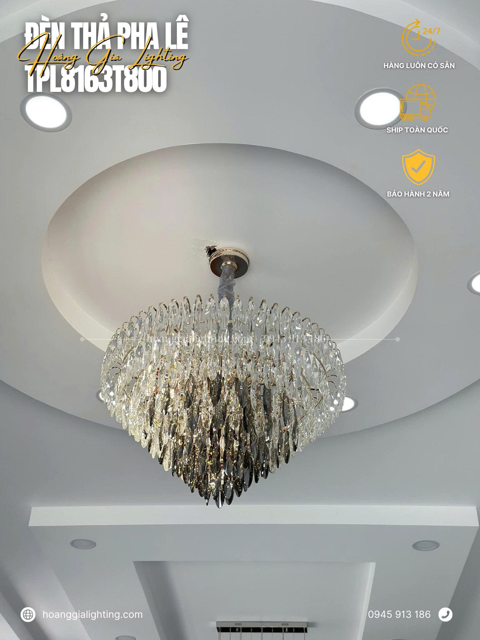 Với đèn thả pha lê từ Hoàng Gia Lighting, bạn sẽ có một không gian sống sang trọng, đẳng cấp và hoàn hảo. Vì vậy, hãy liên hệ với chúng tôi ngay hôm nay để được tư vấn và mua sản phẩm với giá ưu đãi nhất. Hoàng Gia Lighting cam kết sẽ đem lại cho bạn sự hài lòng và niềm tin tuyệt đối trong mỗi sản phẩm đèn của chúng tôi.