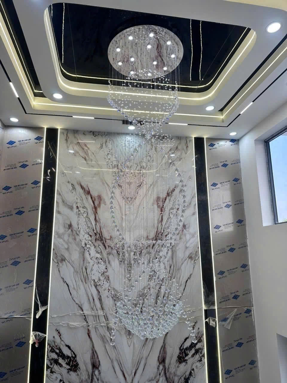 Chất liệu hạt pha lê K9 cao cấp: Tạo nên hiệu ứng sáng lấp lánh và phản chiếu ánh sáng tinh tế, làm tăng thêm sự sang trọng cho không gian trang trí.