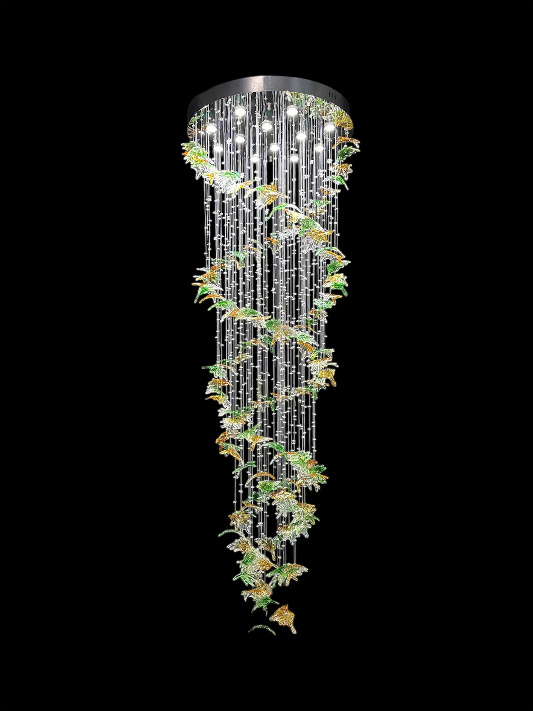 Đèn thả 21 pha lê THD3800T21 là một lựa chọn lý tưởng cho những không gian có trần cao hoặc cần lắp đặt trong khu vực thông tầng. Với khả năng tăng giảm độ dài dây linh hoạt, bạn có thể điều chỉnh đèn để phù hợp với chiều cao của không gian trần, giúp tạo ra một hiệu ứng trang trí ấn tượng và sang trọng.