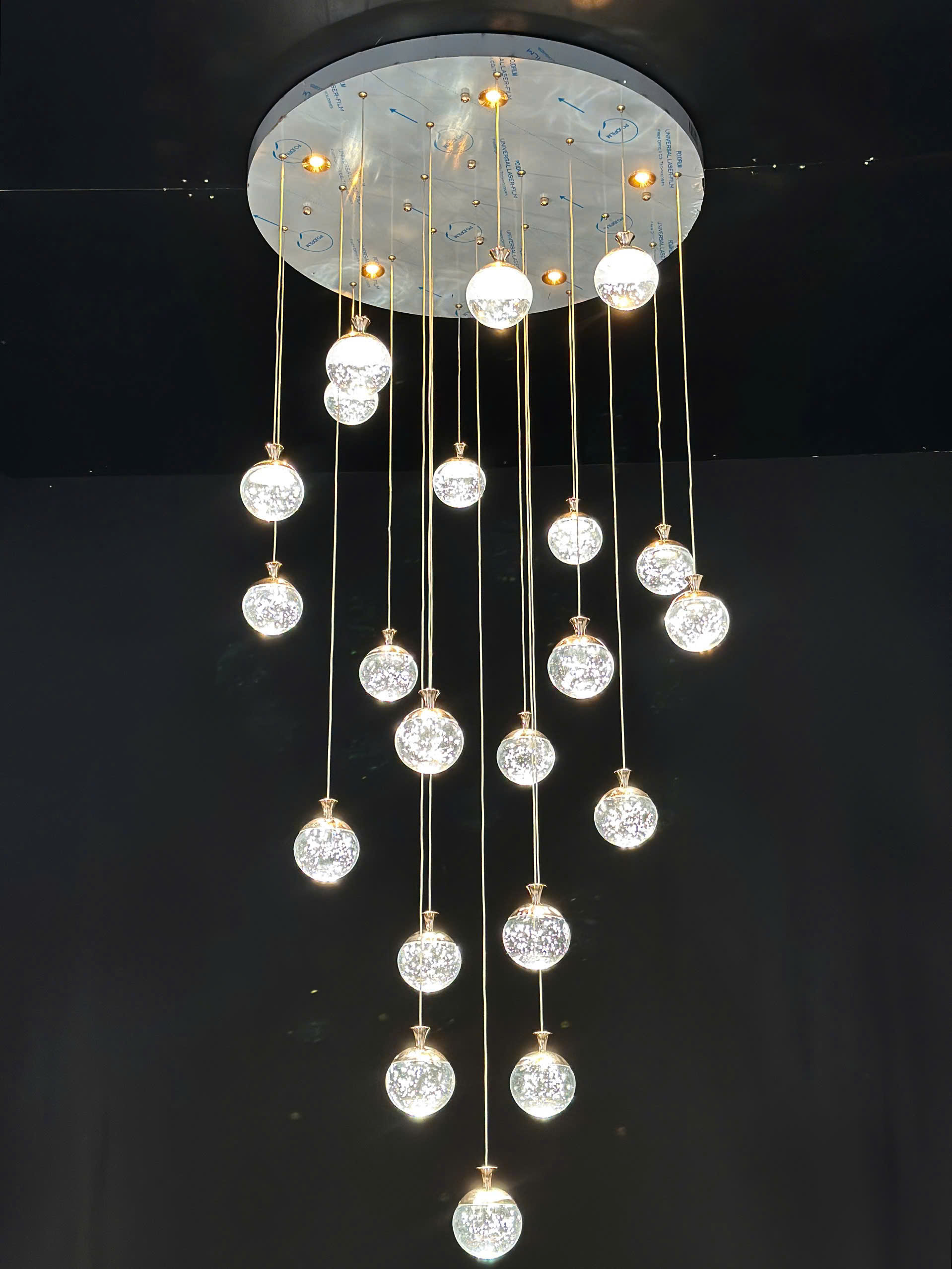 Đèn thả 21 pha lê THD3800T21 là một lựa chọn lý tưởng cho những không gian có trần cao hoặc cần lắp đặt trong khu vực thông tầng. Với khả năng tăng giảm độ dài dây linh hoạt, bạn có thể điều chỉnh đèn để phù hợp với chiều cao của không gian trần, giúp tạo ra một hiệu ứng trang trí ấn tượng và sang trọng.