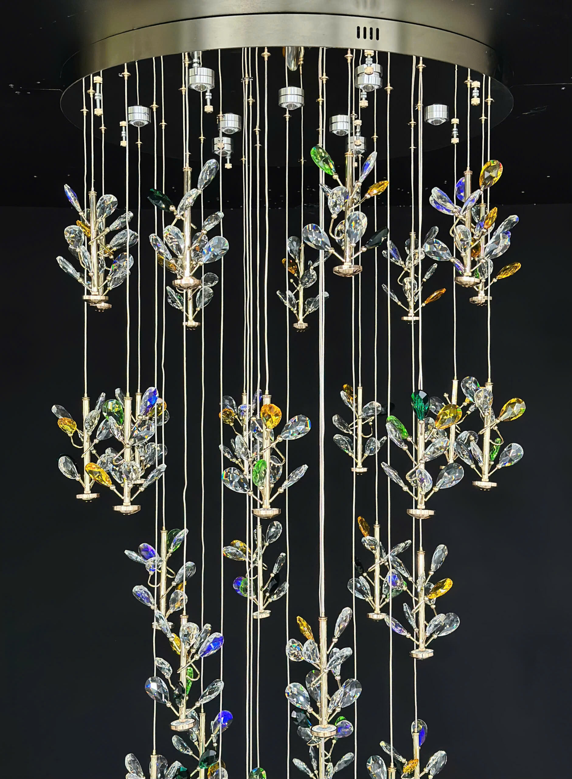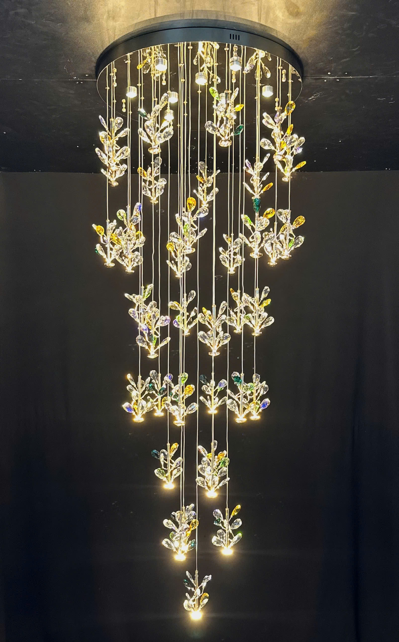 Đèn thả 21 pha lê THD3800T21 là một lựa chọn lý tưởng cho những không gian có trần cao hoặc cần lắp đặt trong khu vực thông tầng. Với khả năng tăng giảm độ dài dây linh hoạt, bạn có thể điều chỉnh đèn để phù hợp với chiều cao của không gian trần, giúp tạo ra một hiệu ứng trang trí ấn tượng và sang trọng.