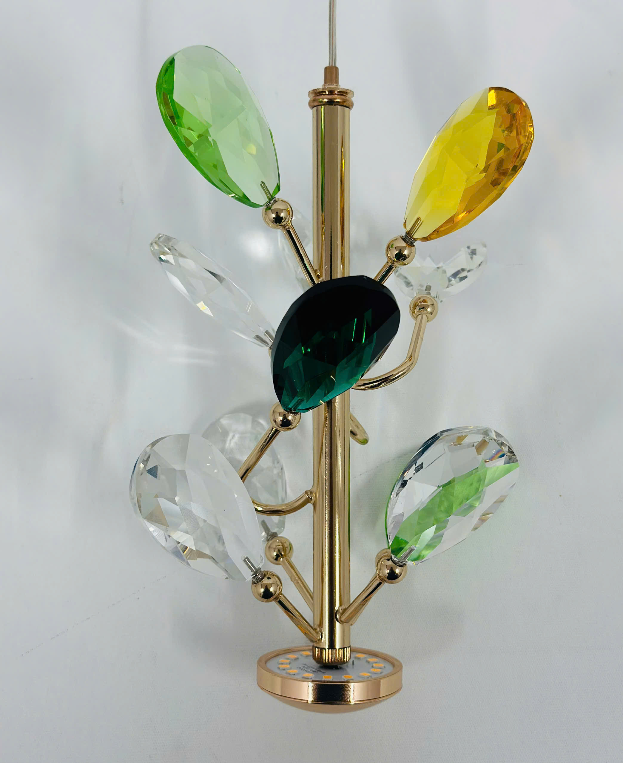 Chất liệu hạt pha lê K9 cao cấp: Tạo nên hiệu ứng sáng lấp lánh và phản chiếu ánh sáng tinh tế, làm tăng thêm sự sang trọng cho không gian trang trí.