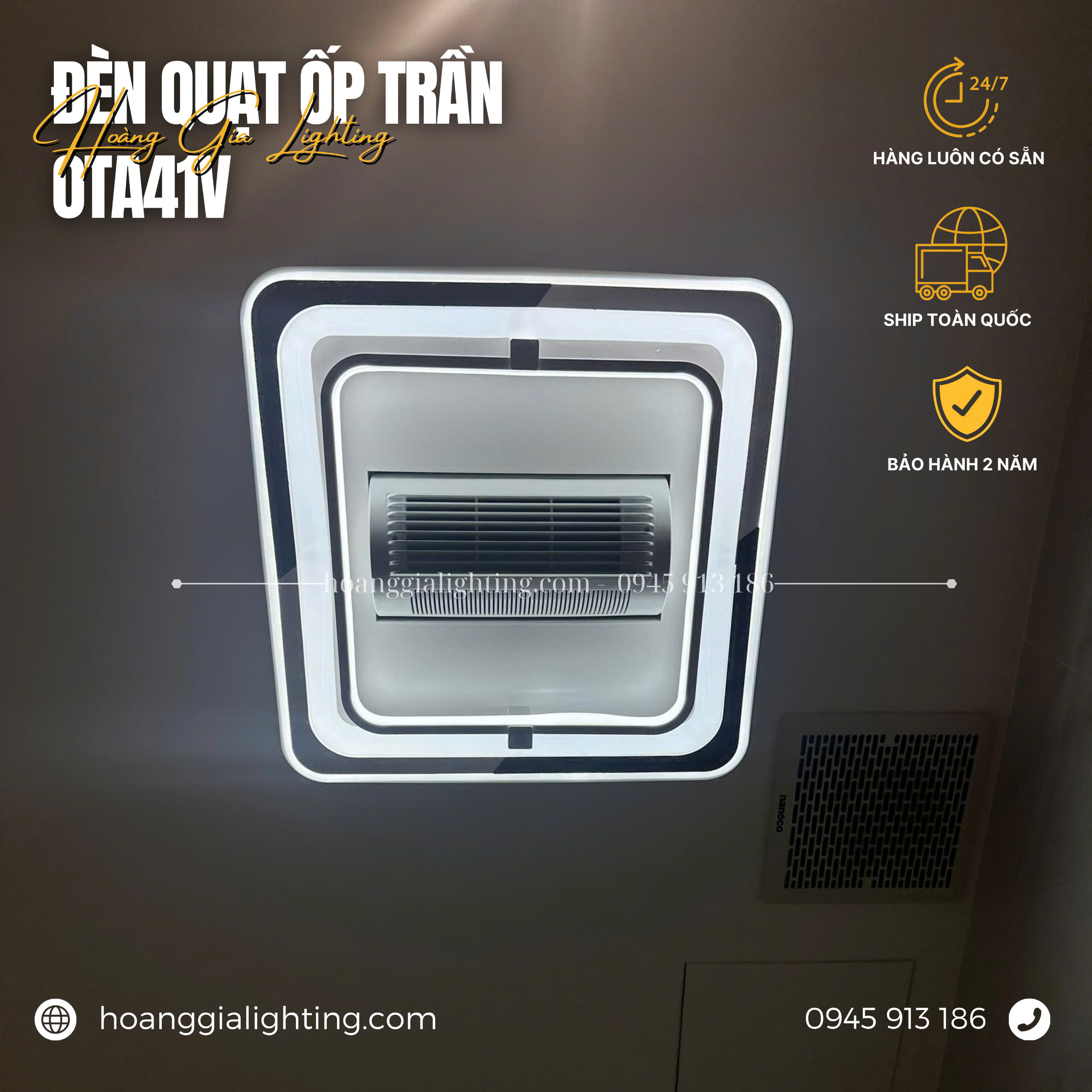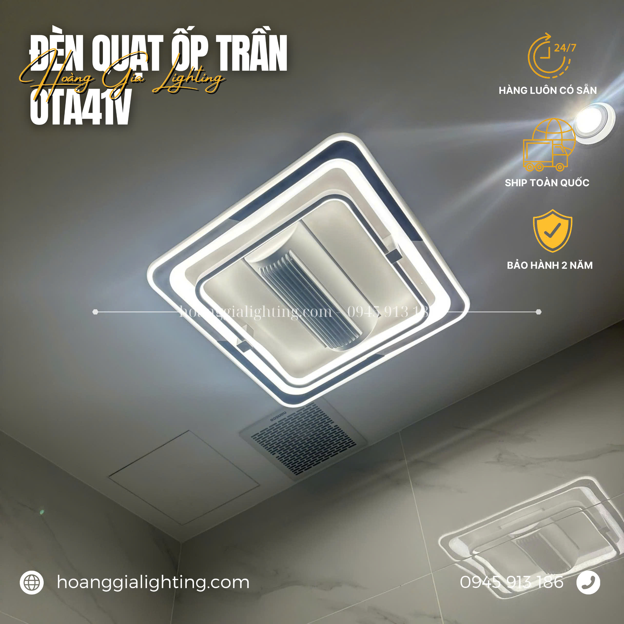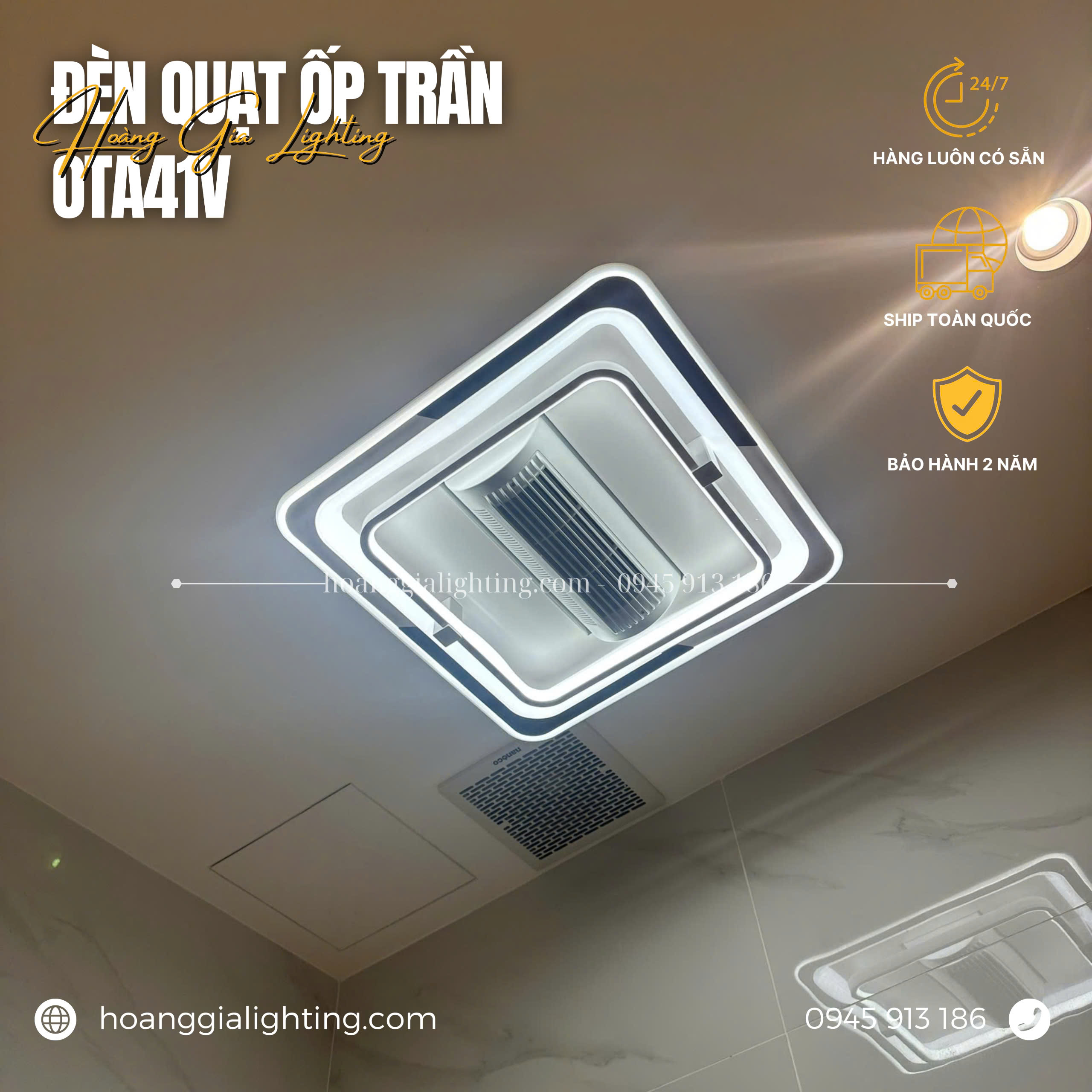 Đèn tích hợp quạt OTA41V được thiết kế theo nhiều phong cách đơn giản, hiện đại, dễ vệ sinh.