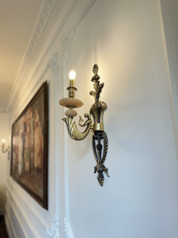 Nếu không gian nhà bạn mang vẻ đẹp hoài niệm, cầu kỳ và sang trọng, hãy chọn những mẫu đèn vách có họa tiết hoa văn tinh xảo, lấy cảm hứng từ kiến trúc Châu Âu cổ. Chất liệu đồng vàng mạ, kết hợp cùng pha lê hoặc thủy tinh uốn lượn là lựa chọn hoàn hảo để tạo nên vẻ đẹp quyền quý.